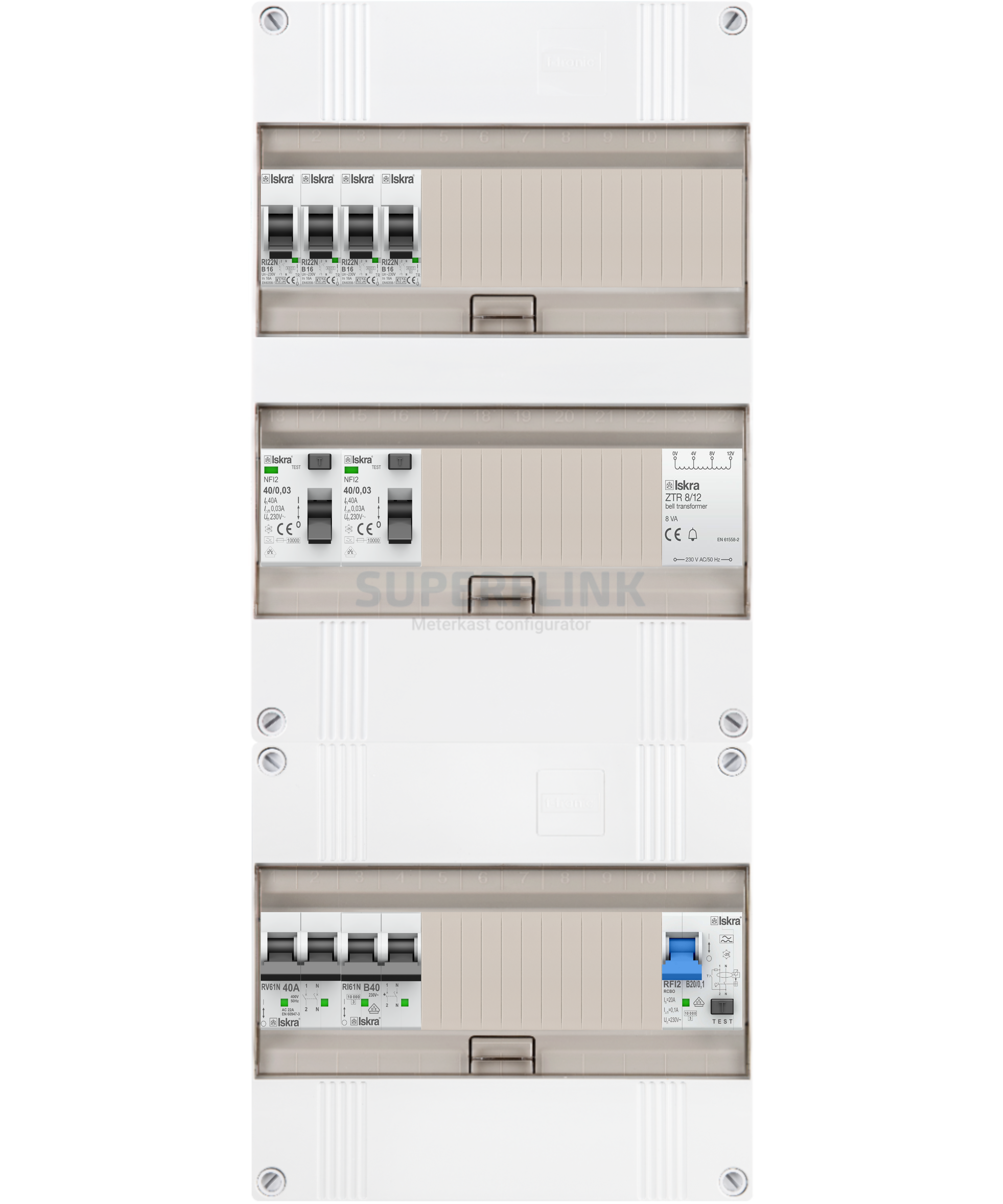 - Hoofdschakelaar Iskra RV61N 40A 1 fase +nul 2 polig