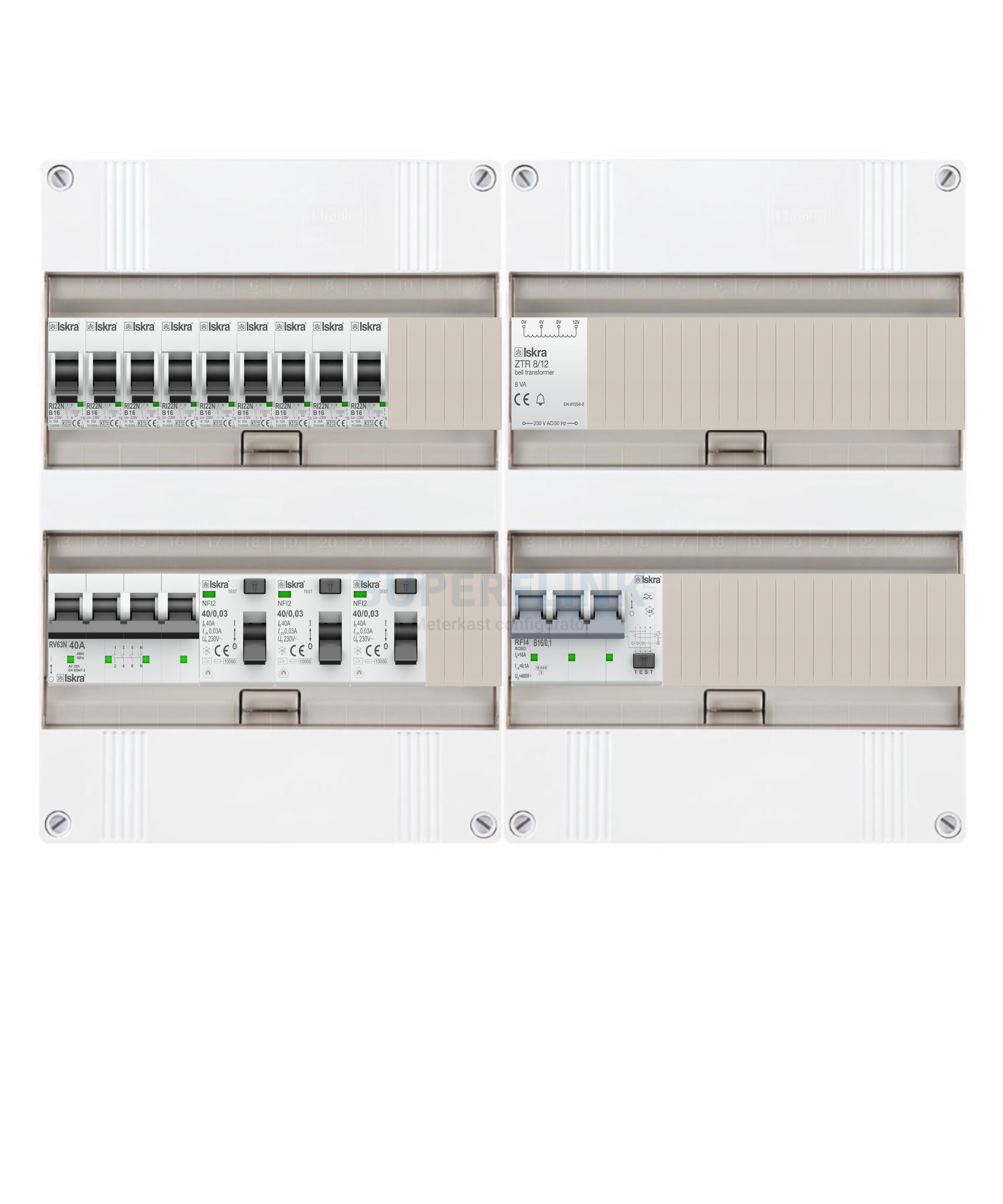 - 3 x Aardlekschakelaar Iskra NFI2-40-30 1 fase +nul 40A 30mA Type A 10kA